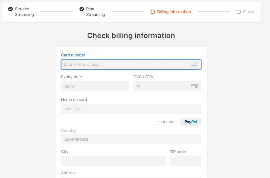 6. Choose the services you need by clicking Next. Then fill in your billing information details.